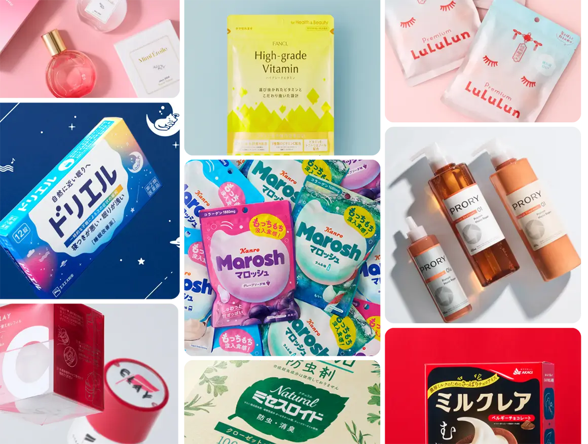 パッケージデザイン、容器デザイン、化粧箱デザイン、ラベルデザイン、LPデザイン、ブランドサイトデザイン、店頭什器デザイン、リーフレットデザイン、エディトリアルデザイン、ロゴデザイン、キャラクターデザイン、展示会ブースデザイン、空間デザイン、ブランディング、商品企画、キャンペーン企画、プロダクトデザイン
