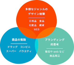 商品に最適な表現私達は、食品・化粧品・日用品・雑貨・販促品など、多様なジャンルや売り場に適したパッケージデザインのノウハウがあるので、「どこで、どのように売られるのか」を考慮し、商品の見せ方をデザインすることを得意としています。また、販促物やWEBなど商品周辺のデザインも手掛けてきた経験から、商品の魅力の伝え方も幅広い観点からご提案できます。